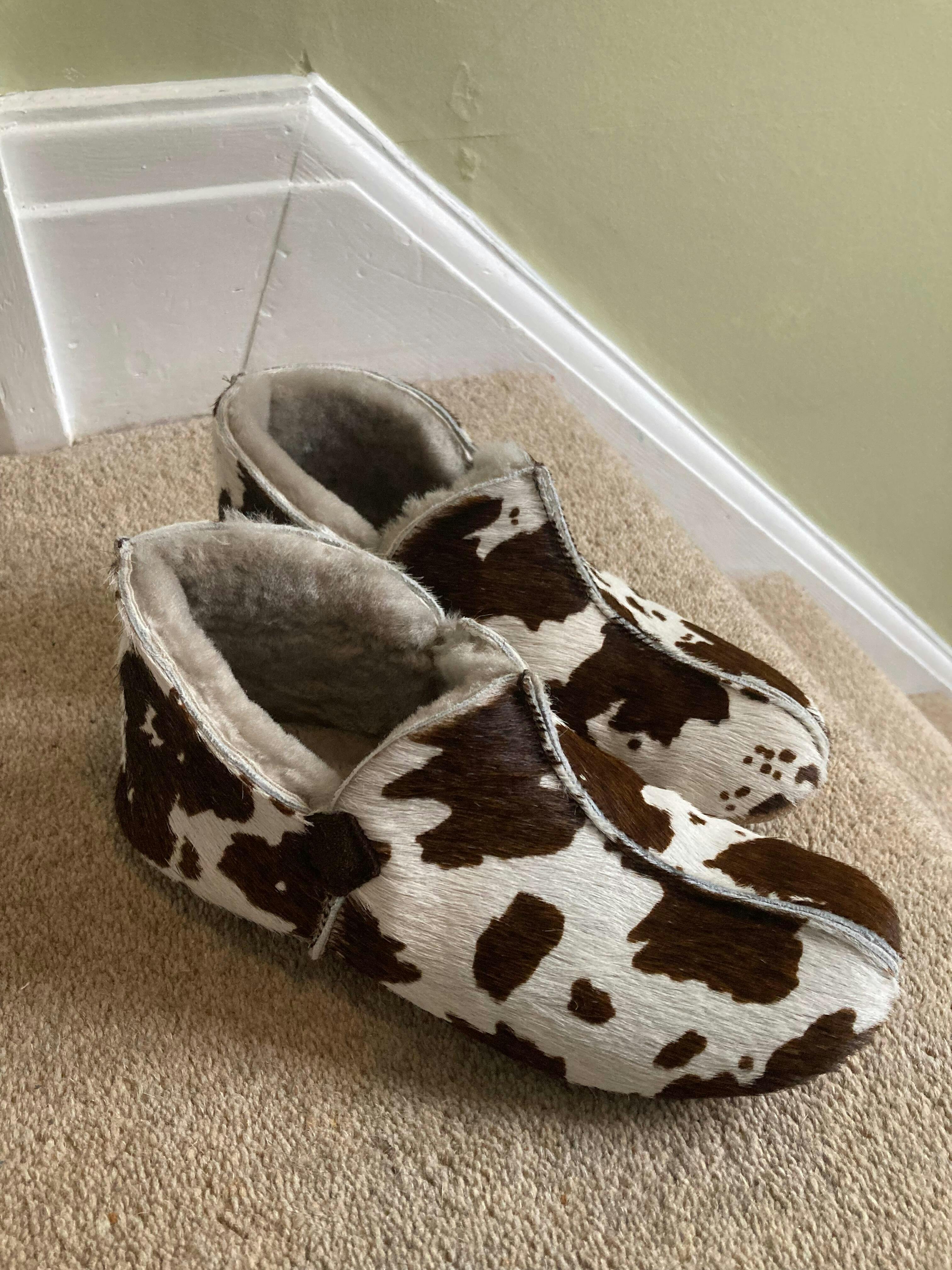 Our ladies sheepskin boot slipper. Made with a premium Italian hair-on cowhide upper, our signature real sheepskin lining and a suede sole. Made in England.